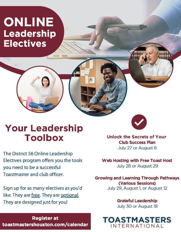 Toastmasters love to connect, so take advantage of it. The Talk Up Toastmasters membership program is the chance to encourage your members to invite guests to a special meeting where prospective members can learn about Toastmasters’ many benefits. Then add five new, dual or reinstated members with a join date between February 1 and March 31, and you’ll receive a special Talk up Toastmasters ribbon to display on your club’s banner. Qualifying clubs can also earn a special discount code for 10% off their next club order. (The discount code expires six months from the date of issue and is not valid with any other offer.)