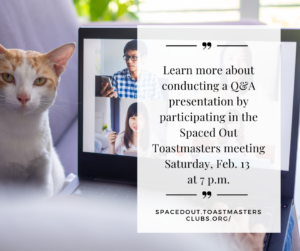 Join Spaced Out Toastmasters special meeting (Sat, Feb 13, 7 pm)