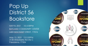 Next Popup Bookstore will be May 15, 12-2:30pm, 3130 Strawberry Rd Ste C, Pasadena, 77504