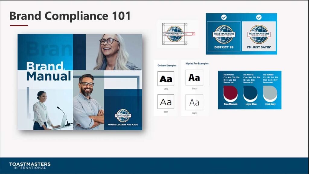 “Toastmasters Branding with Jessica Mobeck” is a complement to the D56 Messenger article by Stacey Butler, Social Media Chair (October edition). Jessica is the Marketing Project Coordinator for Toastmasters International and the organization’s brand specialist. Vice president public relations, club officers and/or members who create Toastmasters posters, flyers, manage club websites, and post on social media platforms will understand the importance of brand compliance after listening to Jessica’s succinct explanations in this recording. This video was contributed by the D56 Public Relations Team.