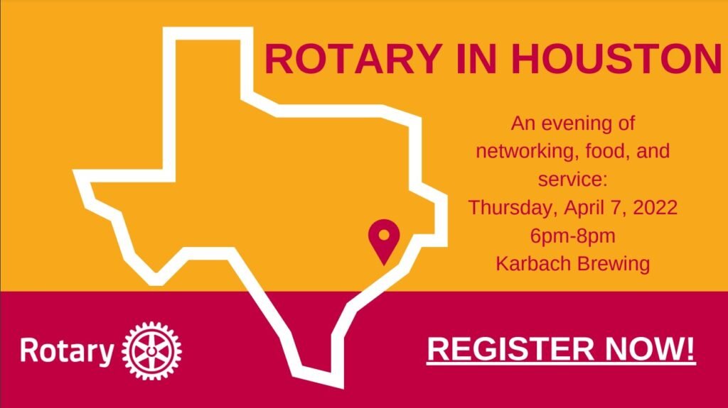 Our partners at Rotary International are inviting all Toastmasters to an evening of networking, food, and service on Thursday, April 7, 2022, from 6-8 pm at Karbach Brewing Co., 2032 Karbach St, Houston, TX, 77902. This event is a great opportunity to engage with each other. The registration link is available here.